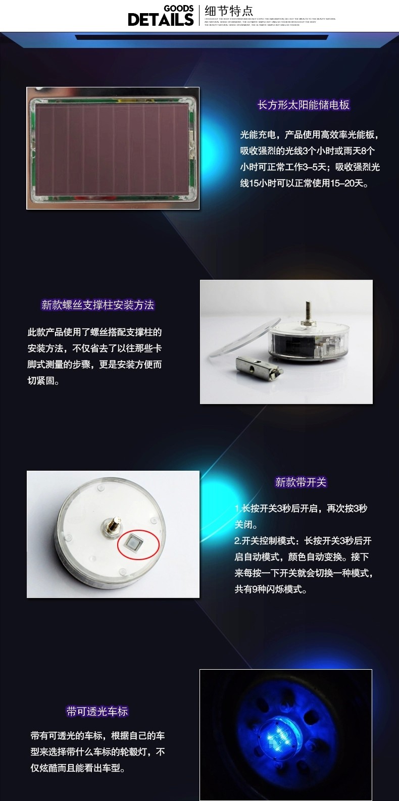 » 大众 太阳能汽车轮毂灯 轮胎装饰灯 风火轮 爆闪LED