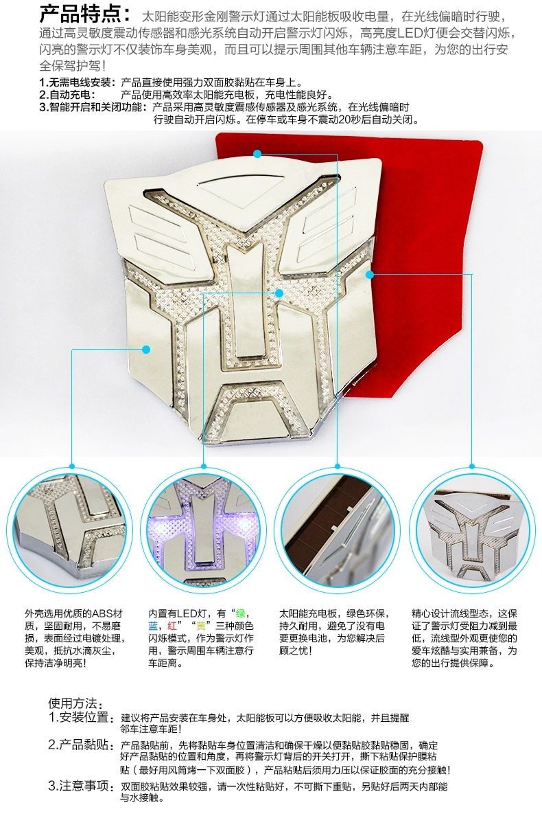 » 太阳能金刚警示灯 汽车装饰灯 LED爆闪灯 改装灯贴 专利