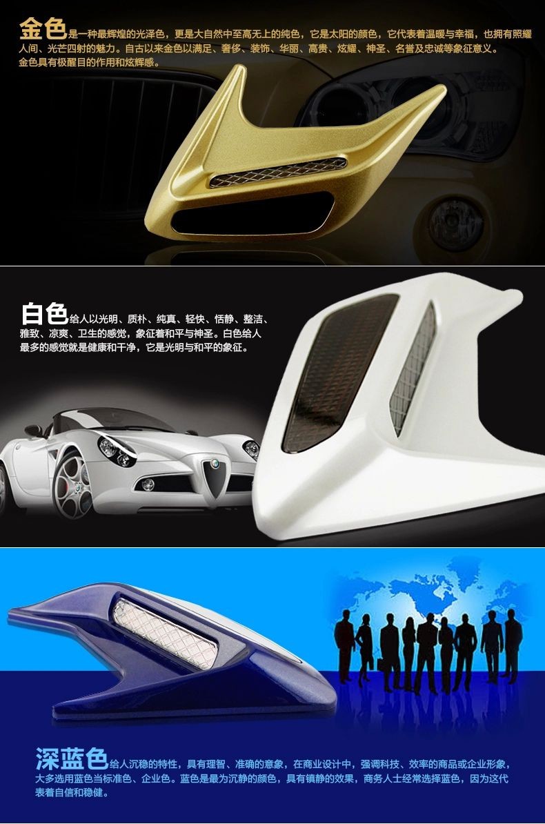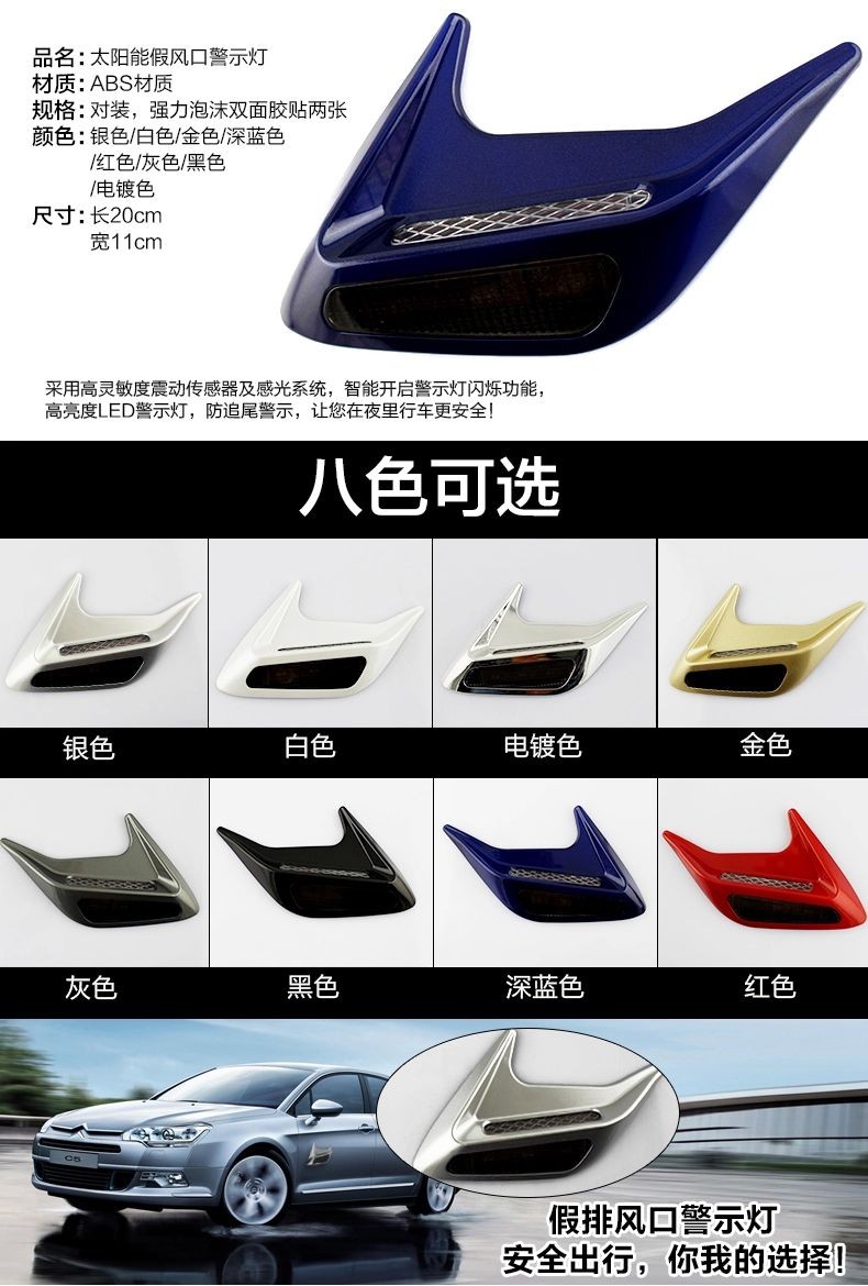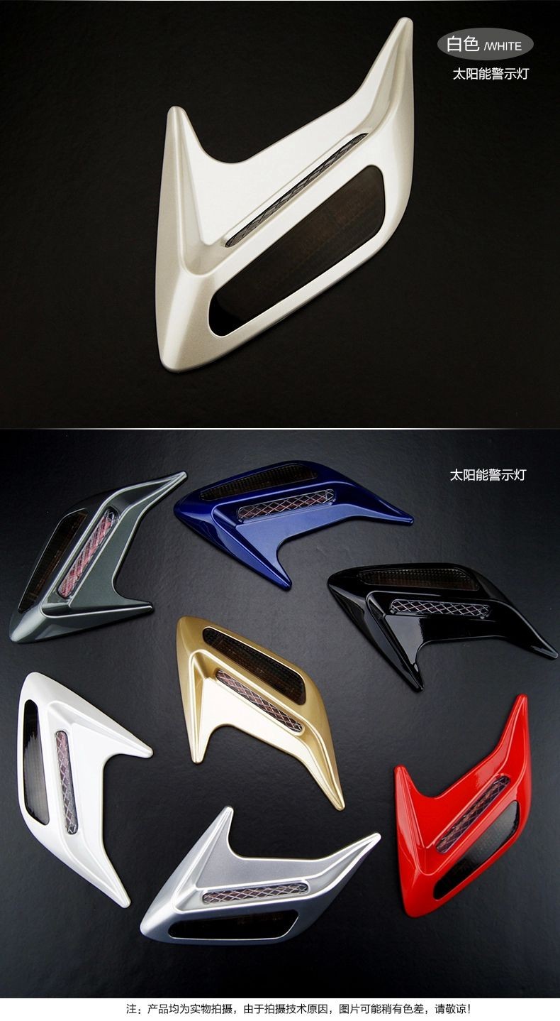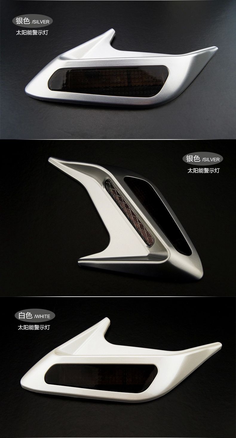 » 汽车太阳能假风口警示灯 引擎盖鲨鱼腮改装 侧风口装饰灯
