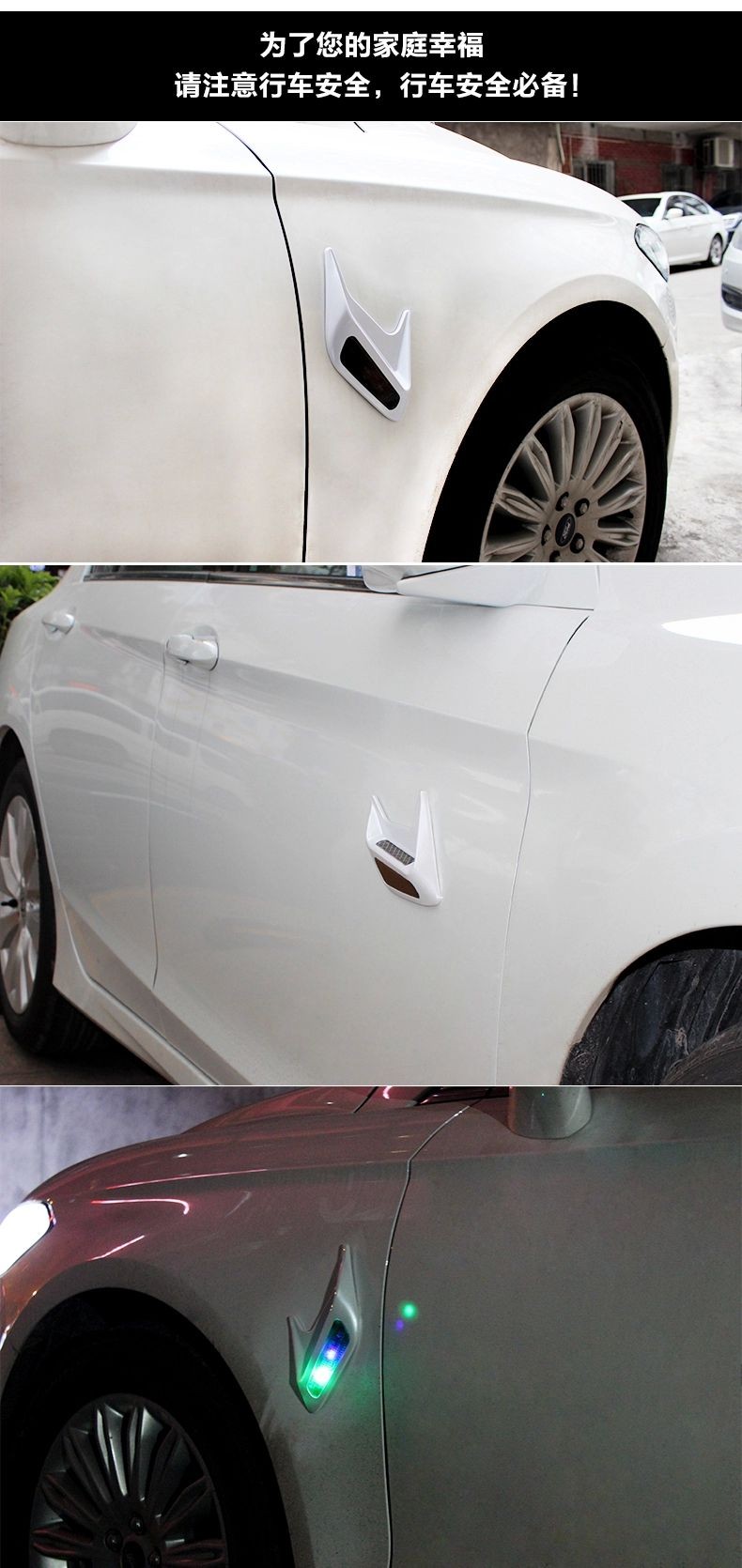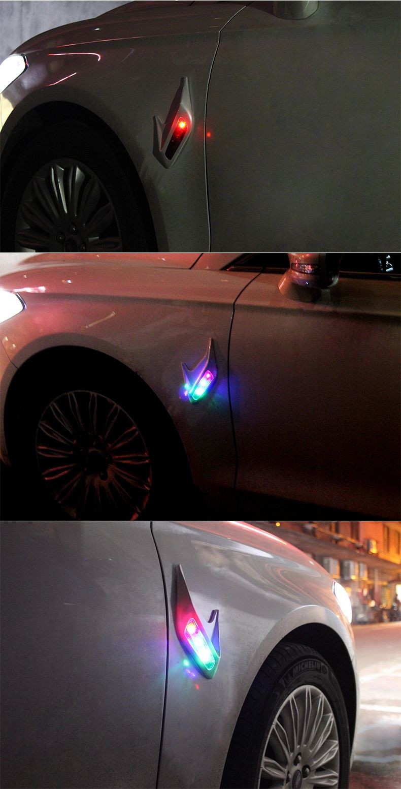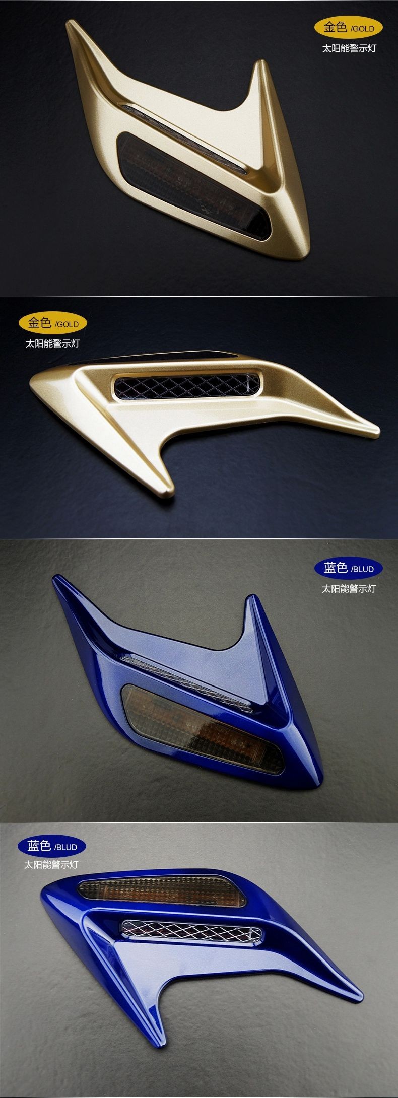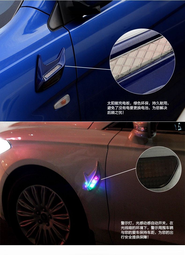 » 汽车太阳能假风口警示灯 引擎盖鲨鱼腮改装 侧风口装饰灯