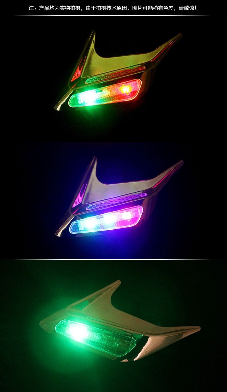 汽车太阳能假风口警示灯 引擎盖鲨鱼腮改装 侧风口装饰灯