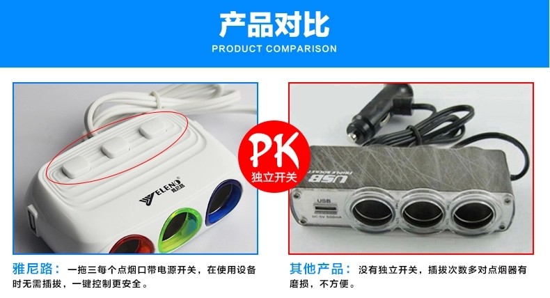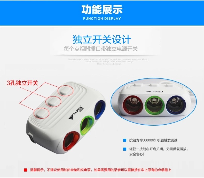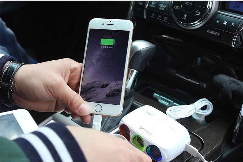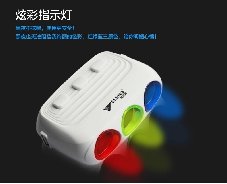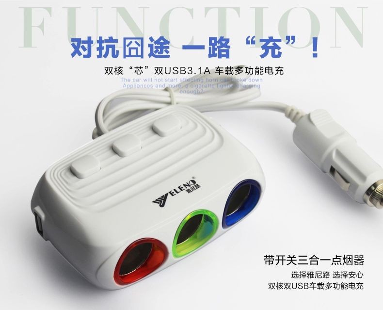 汽车用带开关一分三车载充电器一拖二usb电源分配器